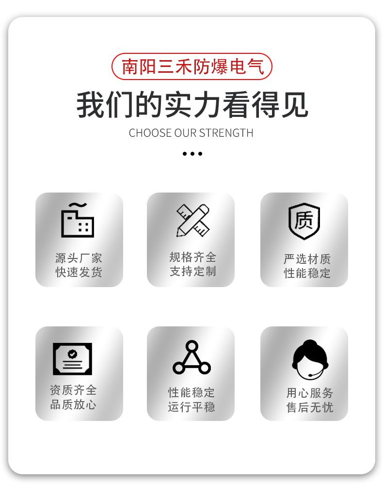 近二十載耕耘防爆電氣行業(yè),經(jīng)驗(yàn)豐富,以高質(zhì)量的產(chǎn)品滿足客戶,以優(yōu)質(zhì)水平作為永續(xù)經(jīng)營(yíng)的動(dòng)力,誠(chéng)信服務(wù)企業(yè)。